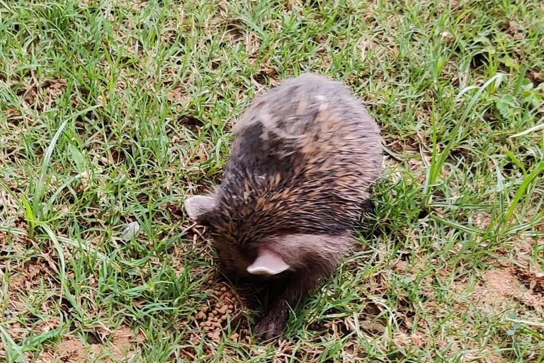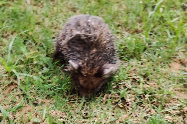 One fine evening while at Gurgaon, I discovered a small, spiky visitor in our garden, a hedgehog that somehow wandered in. Its spines made it look intimidating and my mom quickly warned me to be cautious, as it could potentially hurt me. Despite its tough exterior, I could tell the hedgehog was frightened, probably disoriented from finding itself in an unfamiliar place surrounded with human beings. Determined to help, I grabbed a cardboard box and carefully guided the hedgehog inside, ensuring I didn't cause it any harm or distress.
