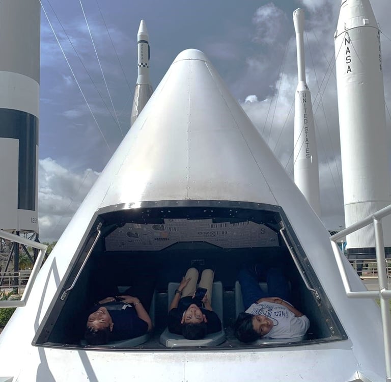 Afterward, we flew to Cape Canaveral, Florida, near Orlando. Our first stop was NASA's Kennedy Space Centre where we had an incredible experience. We explored the Rocket Garden that was surrounded by rockets from various missions. We then watched an IMAX shuttle launch film which was so immersive that I could almost feel the ground shake as the shuttle lifted off.